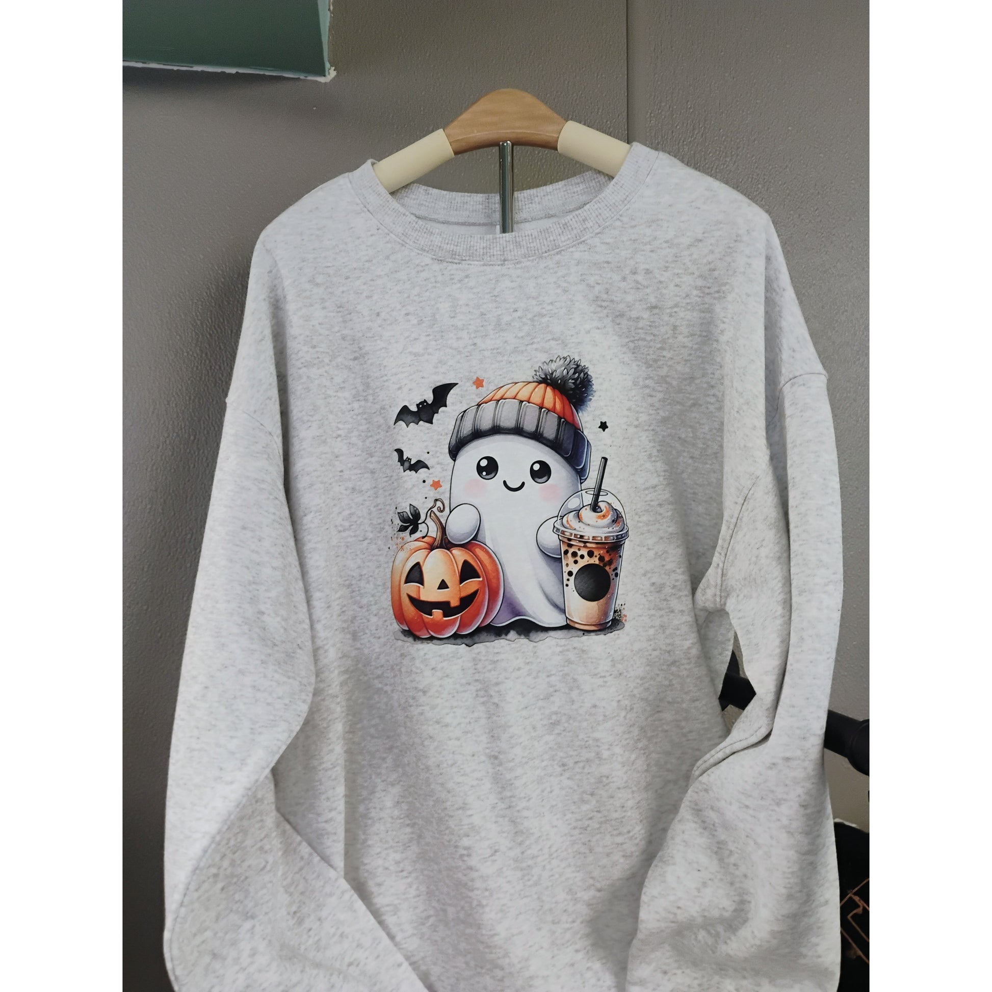 Super Soft Graphic Ghost Sweatshirt Printed on a Grey or light tan Sweatshirt. If not in stock please allow 2 ~ 3 days